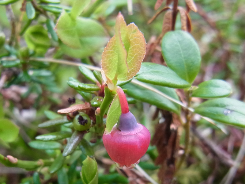 August dauert die Blühperiode der Preiselbeere. Nach der Befruchtung