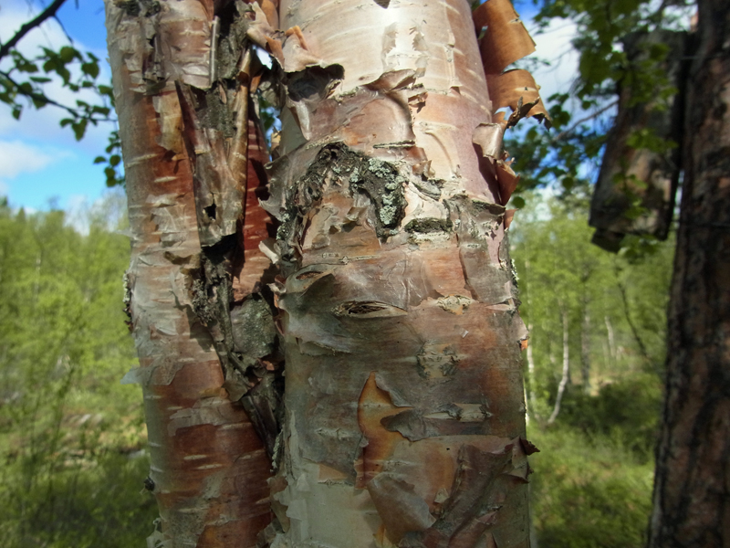 Typisch für die Moorbirke ist, dass die Rinde glatt ist. Wechselständig