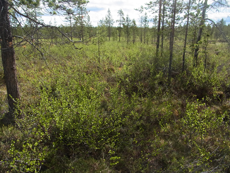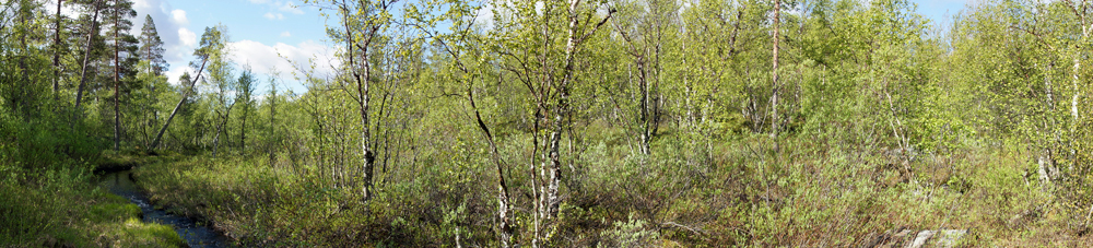 Panoramablick auf einen Moorbirken-Bestand (Betula pubescens) in der Taiga