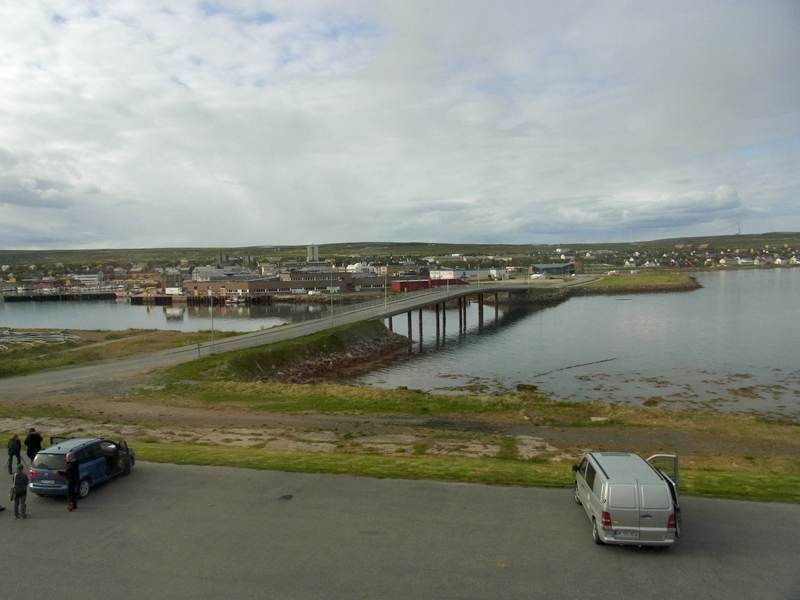 Blick in Richtung Norden zum Festland mit dem Vadsø Fjordhotell im Vordergrund |