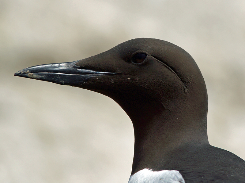 Winterhalbjahr an, während die Vögel ihr Schlichtkleid tragen. Der Schnabel der Trottellumme ist relativ lang,