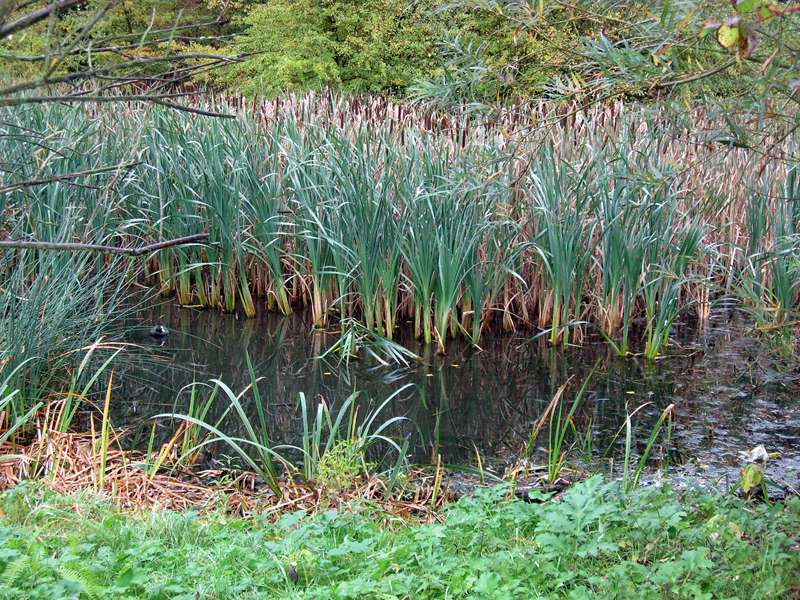zahlreiche wasserliebende Pflanzen, zwischen denen sich scheue