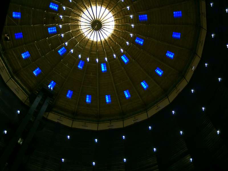 Innern des Gasbehälters den Eindruck eines Sternenhimmels, siehe Foto