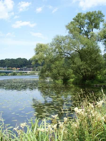 Die Ruhr mit Seerosen und Ufervegetation |