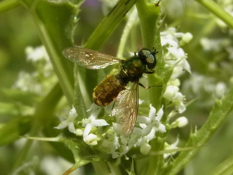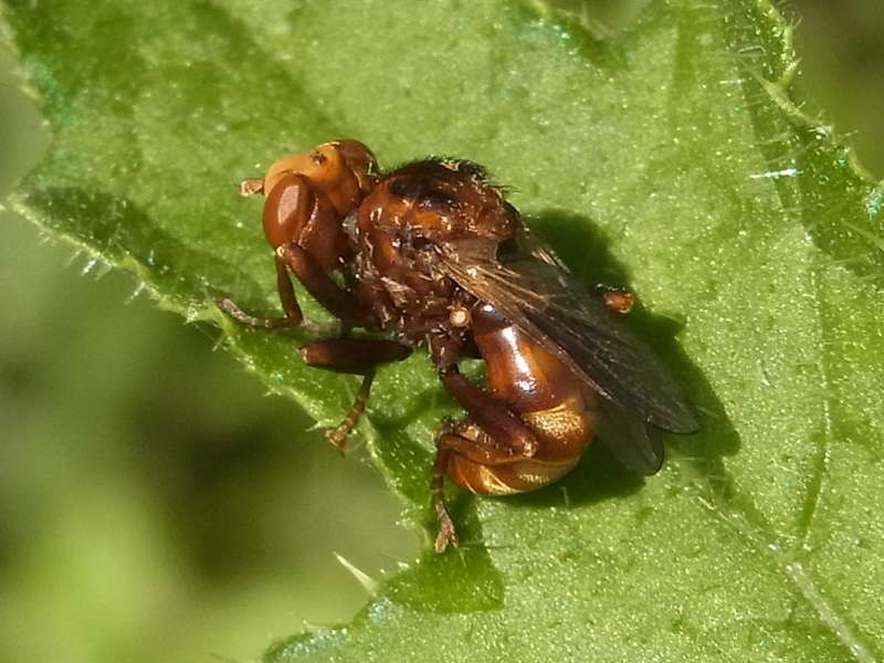 · Gemeine Breitstirnblasenkopffliege (Thick-headed Fly, Sicus ferrugineus)