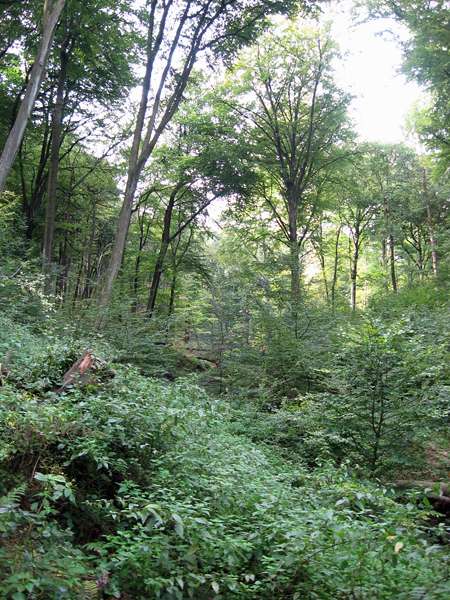 Nach Süden hin grenzt ein steiler Hang an das Waldgebiet, der ebenfalls