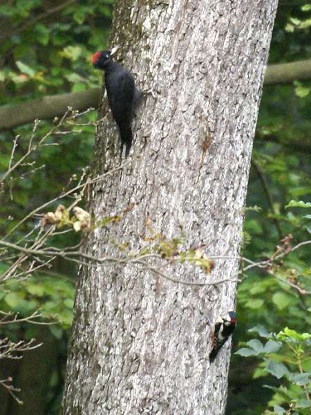 Schwarzspechte (Dryocopus martius im Schellenberger Wald) in der dichten