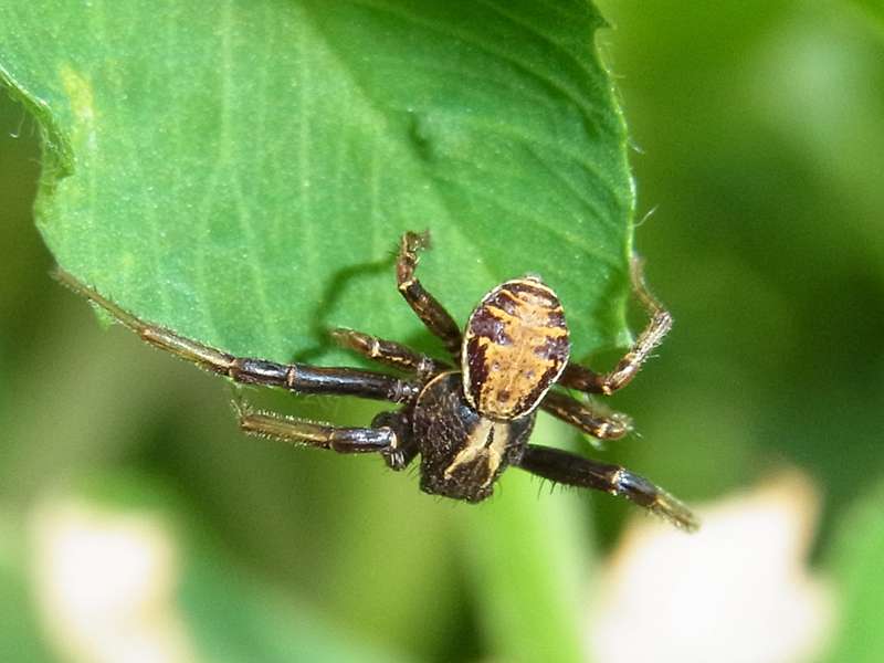 Spinnen. Der vordere Körperbereich (Prosoma) ist an den Seiten dunkel,