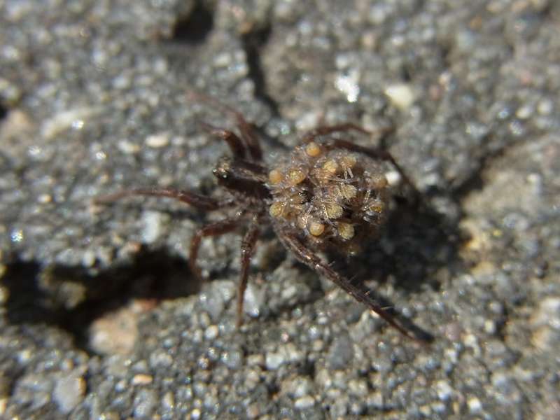 Millimeter. Weibliche Gewässerrand-Wolfspinnen sind sechs bis neun Millimeter