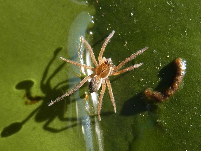 der Gewässerrand-Wolfspinne, die manchmal auch als Piratenspinne