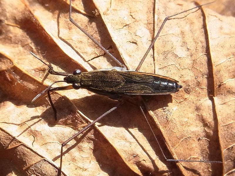 schwarz. Hell bräunlich sind die Beine dieser Wanzenart gefärbt, die vor