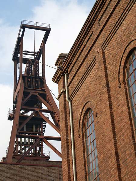 Seite mehrfach gezeigte Wahrzeichen der Zeche, das rotbraun
