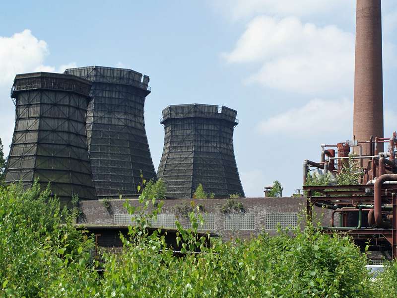 schlanken Kamine der Kokerei sind 60 beziehungsweise 98 Meter hoch.