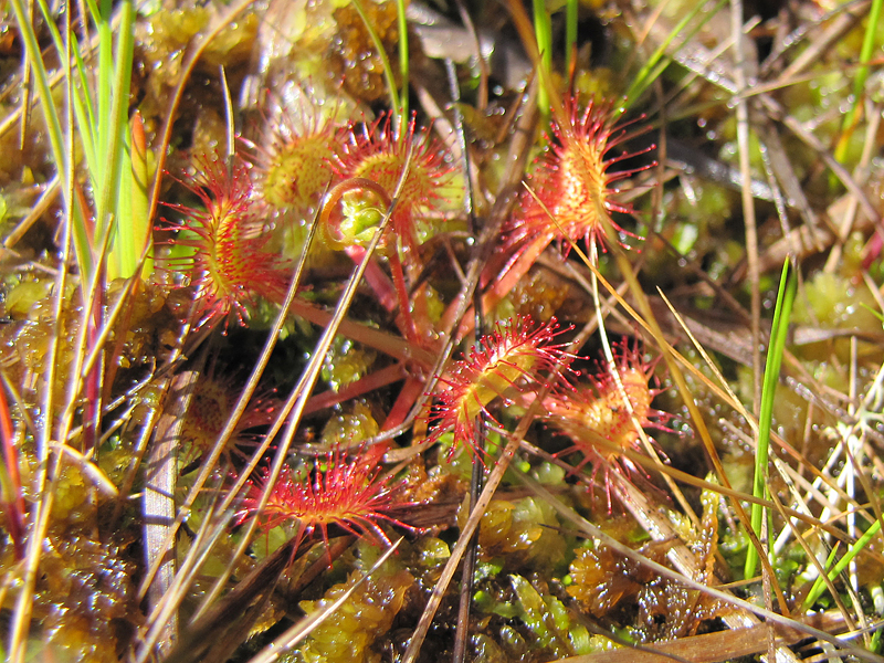 zu sehen: Pflanzen wie der Sonnentau, im Gras rastende