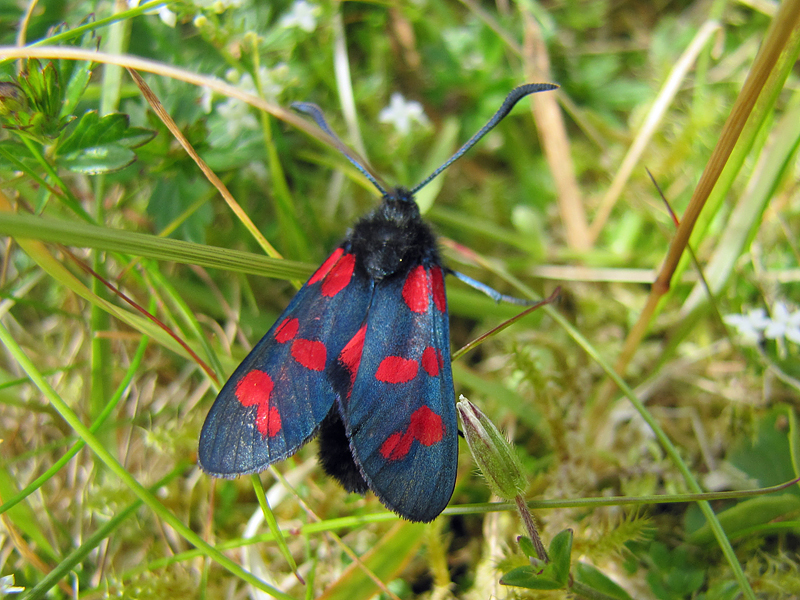 Sechsfleck-Widderchen (Zygaena filipendulae). Wenn die Sonne scheint,