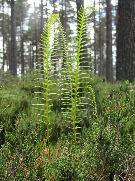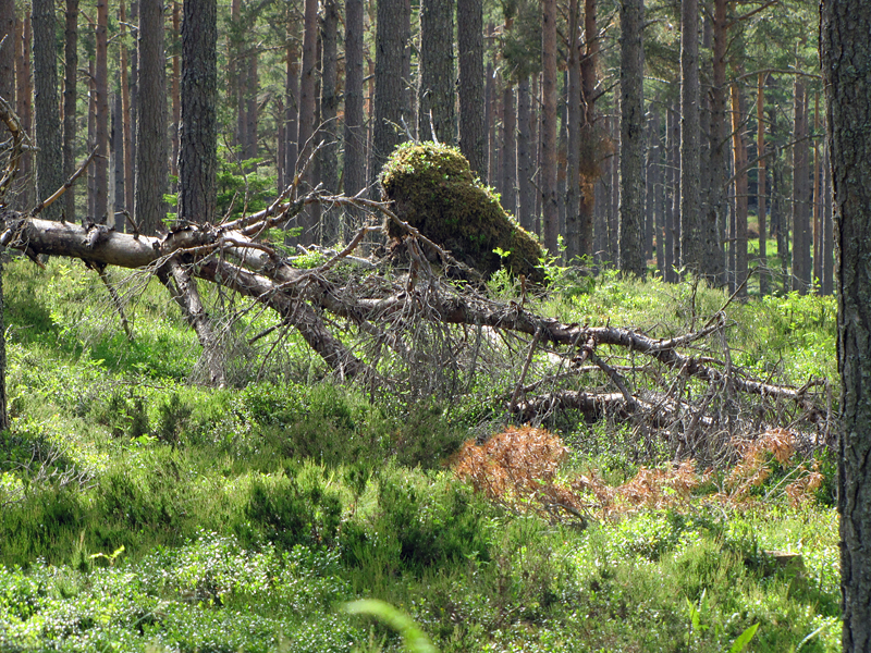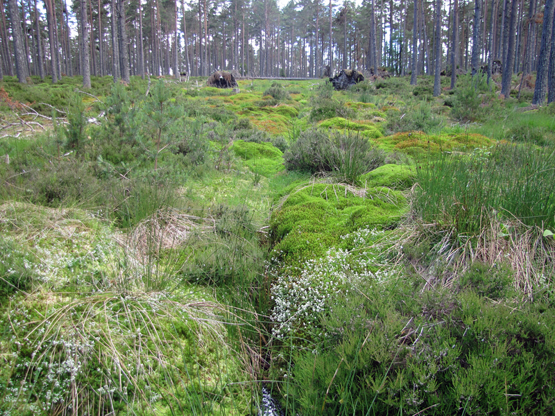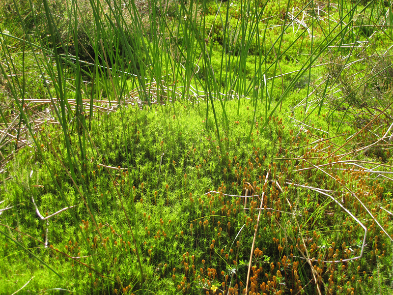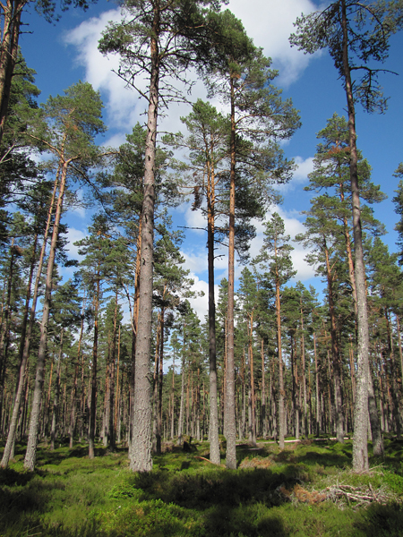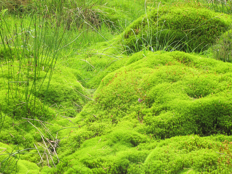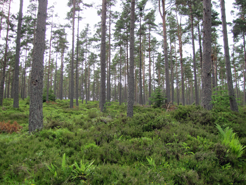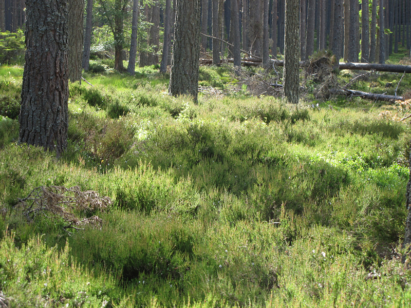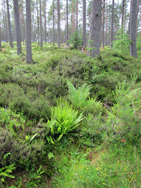 mit seinen dicken Moospolstern und den hohen, schlanken Bäumen,