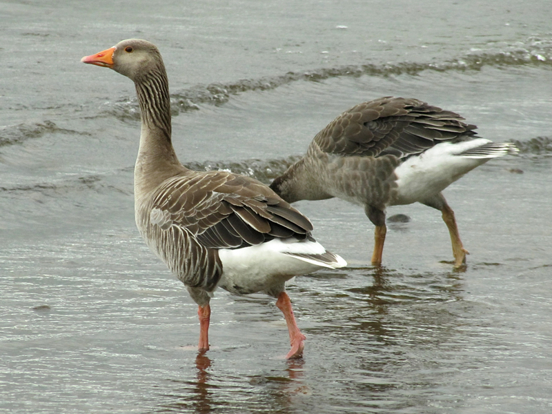graubraun gefärbt, die Beine dunkel und auch der Schnabel ist dunkel