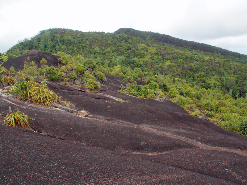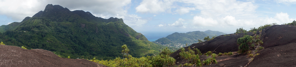 natürlich auf die üppig bewaldeten Berghänge des Morne Seychellois