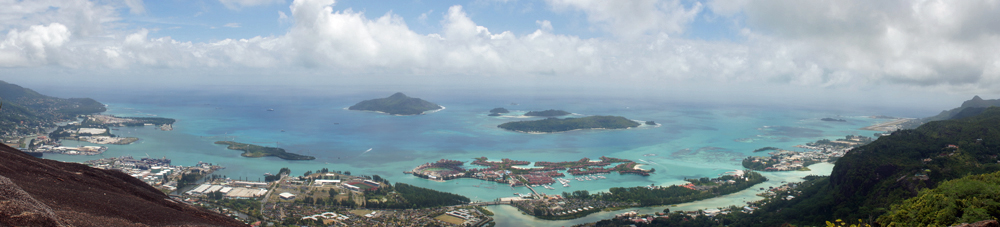 Blick auf den St. Anne Marine Natinalpark und auf Eden Island