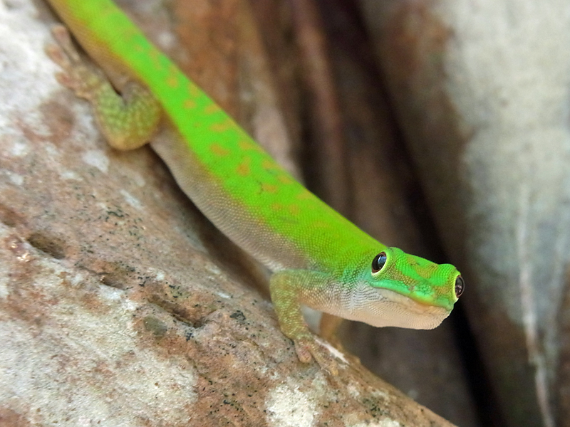 Bronzegeckos der Art Ailuronyx seychellensis vor. Leider habe