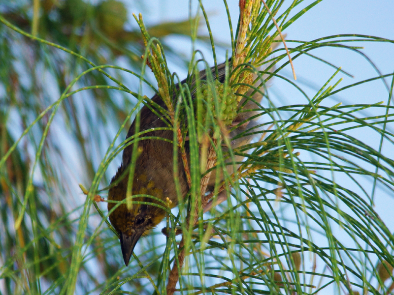 Seychellen-Weber (Foudia sechellarum) sowie den ebenfalls extrem seltenen