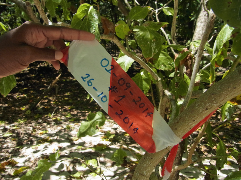 Die Nester der Meeresschildkröten werden markiert;