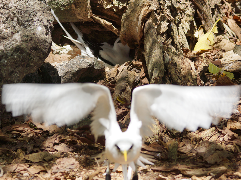 Immer genau hinschauen - zwischen so mancher Baumwurzel brüten Weißschwanz-Tropikvögel (Phaethon lepturus lepturus) |