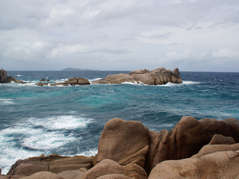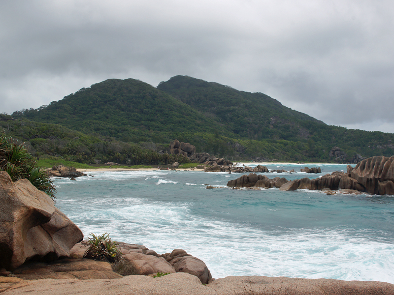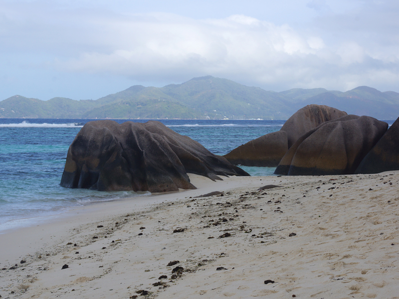 Ein Blick zurück auf die Nachbarinsel Praslin |