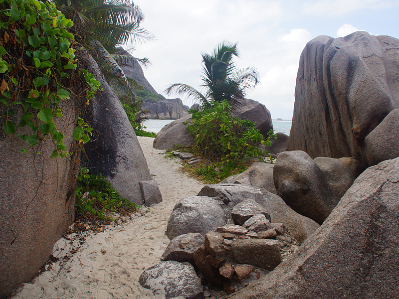 An der Anse Source d'Argent ging es los in Richtung Süden - anfangs über einen breiten Pfad |