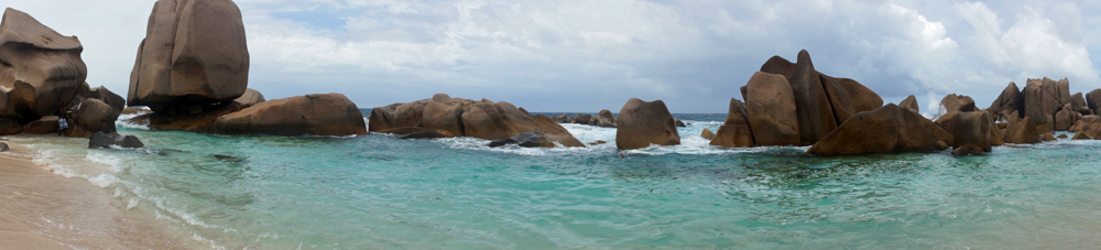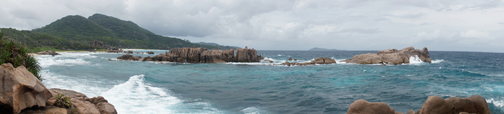 Panorama-Blick auf die Felsen in der Grand l'Anse