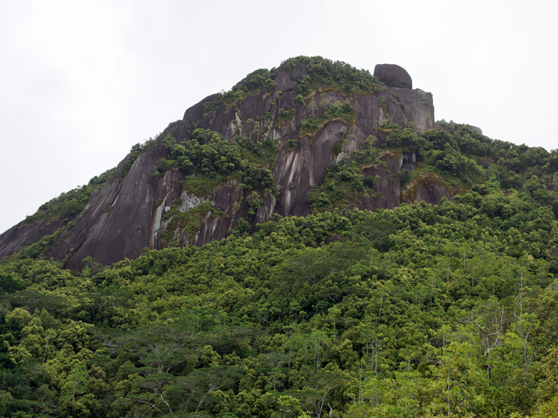 nackt aus dem üppigen Grün des Nebelwaldes ragen. Insbesondere im südlichen Teil der Insel ist Mahés