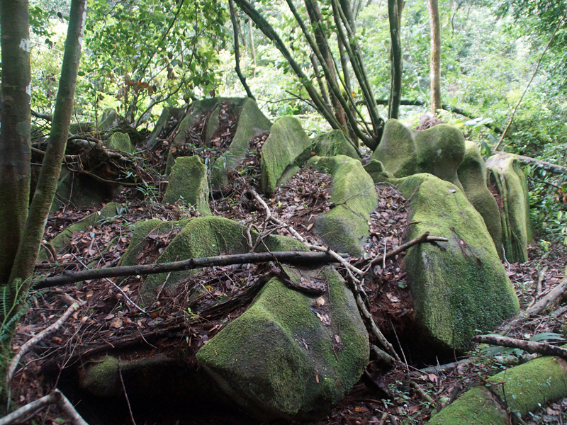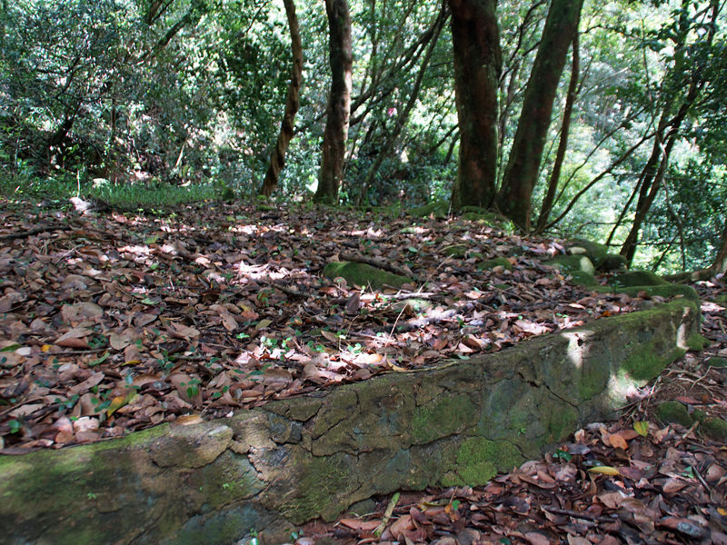 Im Wald gibt es Ruinen von Häusern, in denen früher ehemalive Sklaven gewohnt haben |