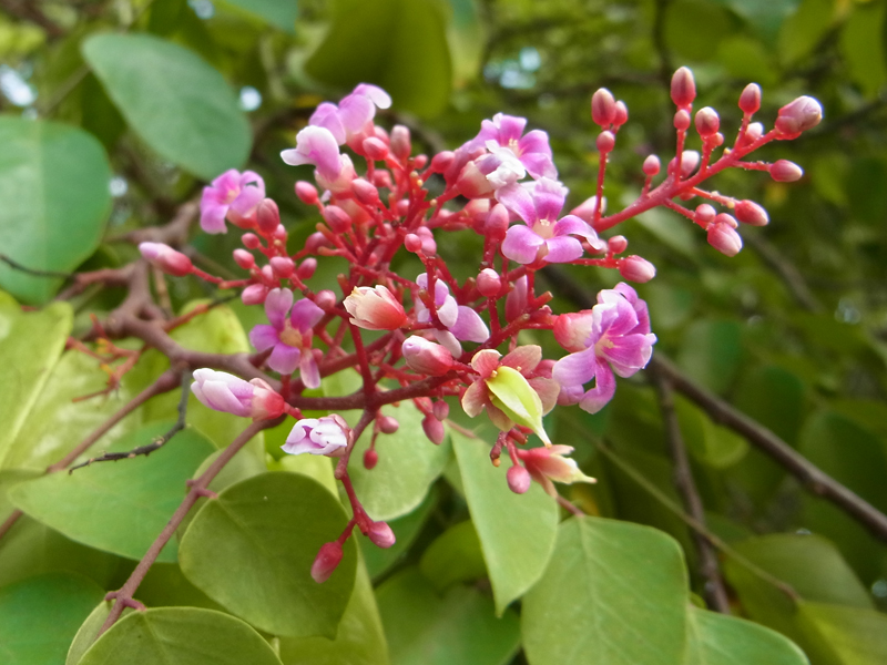 Blütenstände. Dunkelrot sind die Blüten gefärbt, sie sind einige