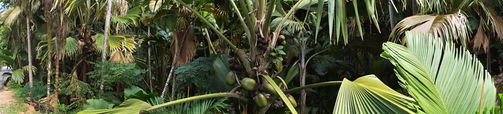 Tal gibt es einen recht großen Bestand der seltenen Seychellenpalmen (Lodoicea maldivica),
