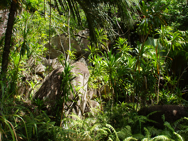 Granitfelsen und viel Wald - so sieht es im Hinterland von Praslin aus |