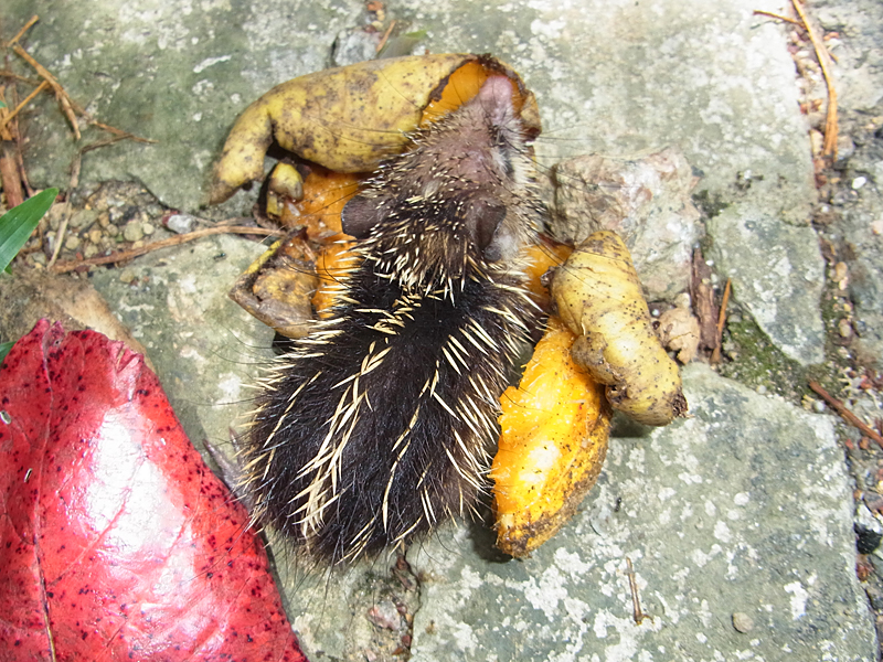 einzelnen sehr langen, hellbraunen Borsten, die in mehreren Längsreihen