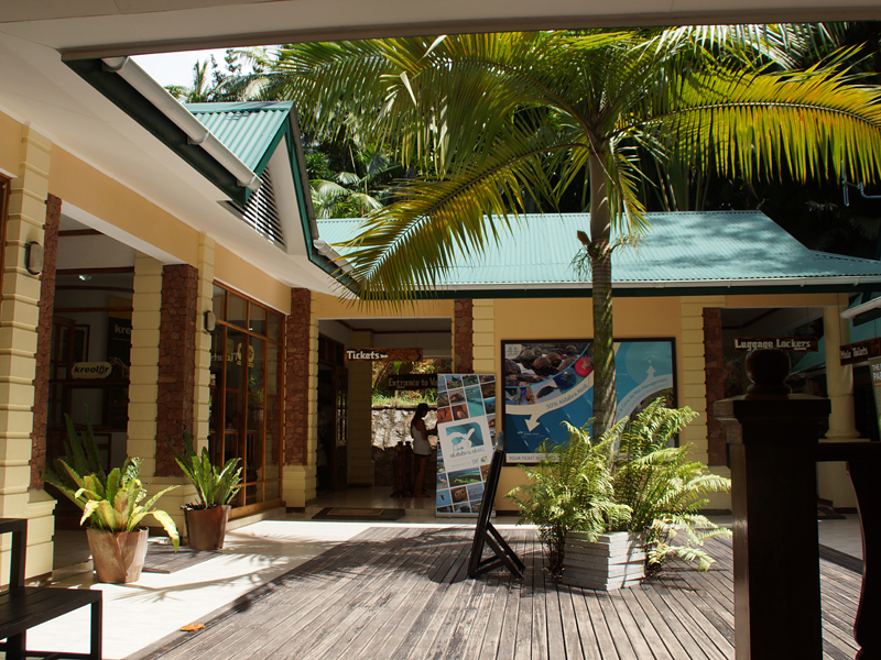 Schutz stehenden Aldabra-Atolls genutzt. Vor dem Besucherzentrum am Eingang des Vallée