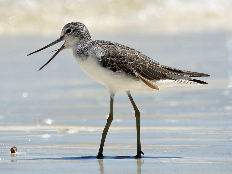 unauffällig grau und auf der Unterseite hell gefärbt. Grünschenkel leben