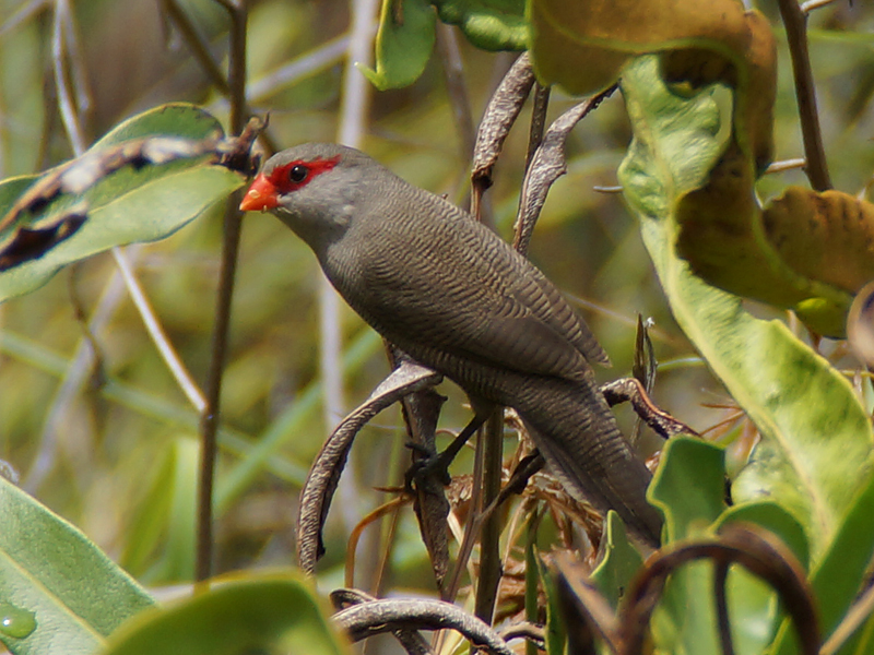 leuchtend orangerot gefärbt. Junge Wellenastrilde haben einen schwarzen