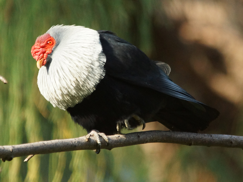 hellgraue Brustgefieder gilt. Im Gesicht tragen die Vögel keine Federn.