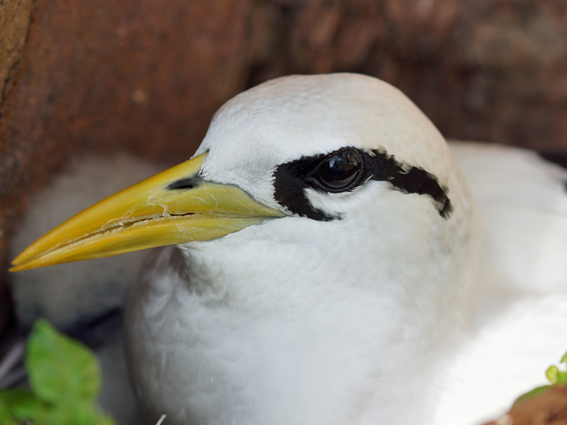 auf den Seychellen brütende Weißschwanz-Tropikvögel und Jungtiere in