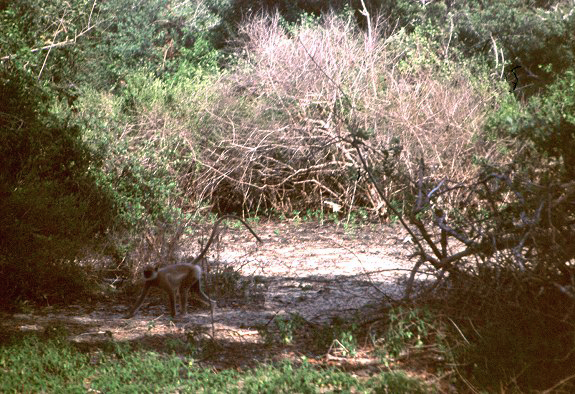 Südliche Hanuman-Languren, herum, die im Gegenlicht einen doch noch recht fotogenen