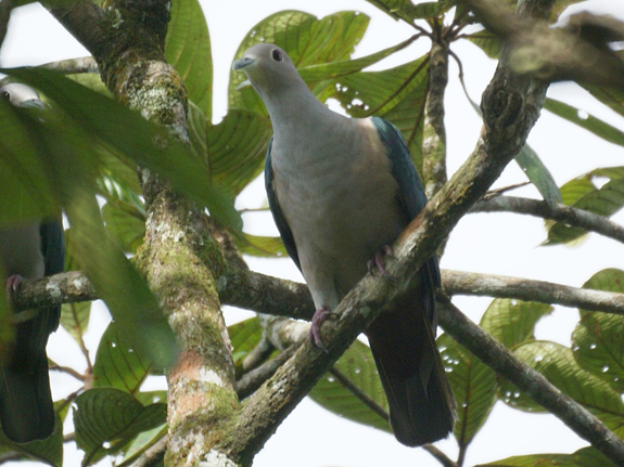 Bronzefruchttauben und der Ceylon-Papageichen (Loriculus beryllinus), einer winzigen