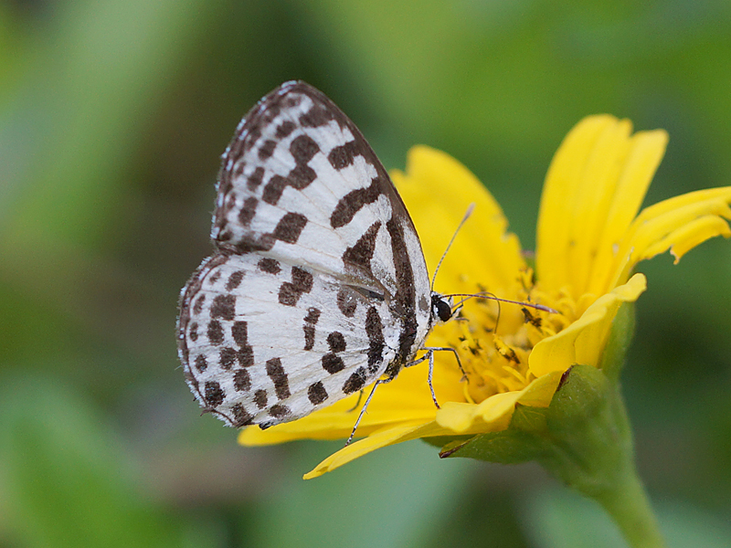 Vorder- als auch die Hinterflügel sind abwechselnd schwarz und weiß