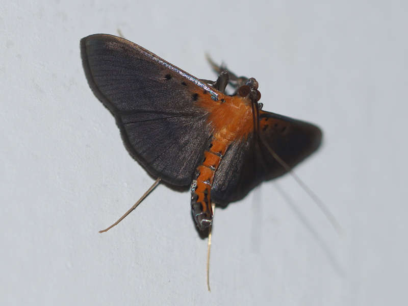 Körper von Filodes fulvidorsalis ist oben ebenfalls orange,