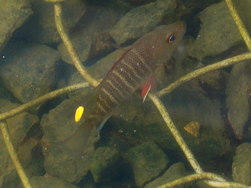 Brackwasserzone der Gestreifte Buntbarsch; auch im Süßwasser kann man