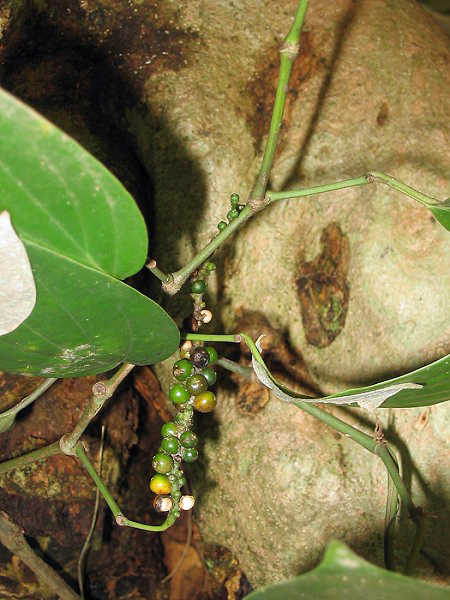 Pfefferkörner an der rankenden Pflanze reifen. Allerdings sollte man bei