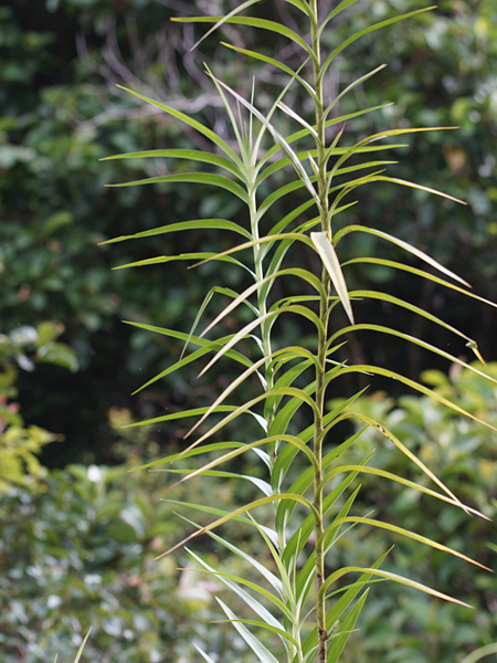 mittelgrün sind die linealen Blätter gefärbt. Wegen ihrer attraktiven,