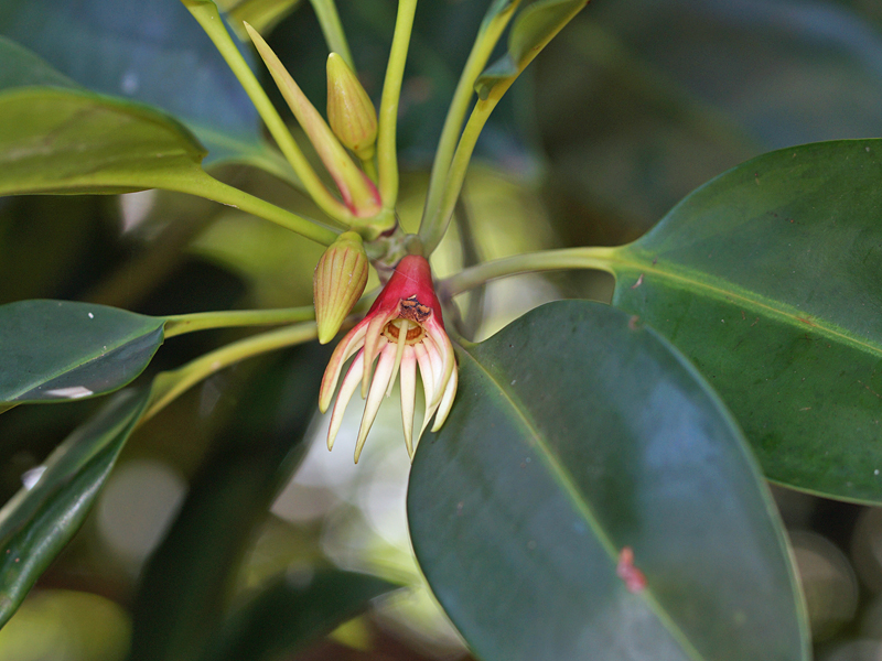 auf, die zugespitzt sind und fingerähnlich wirken. Blüten können sich am gesamten Stamm und an den