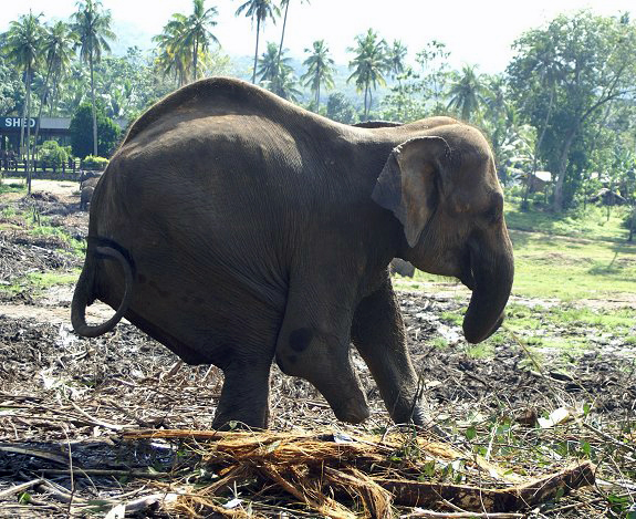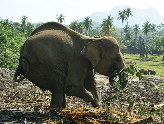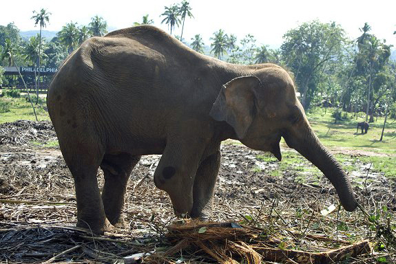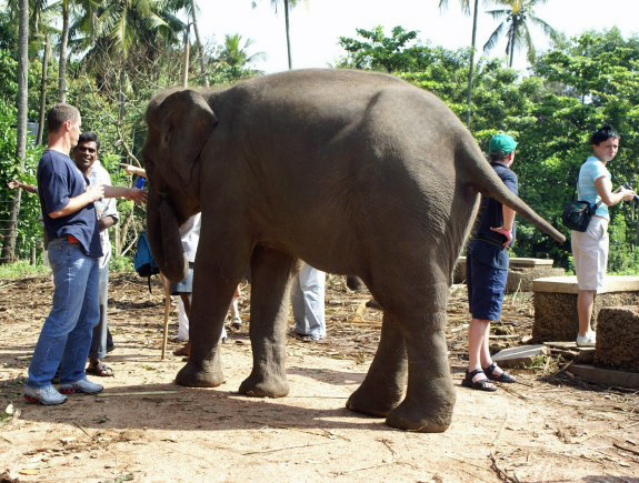 sich für die gehandicapte Elefantenkuh und andere Tiere in Pinnawela